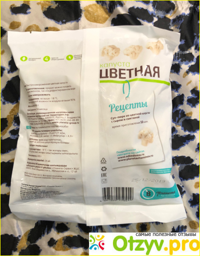 На обратной стороне упаковки написаны рекомендации по приготовлению капусты, сообщение, что овощ выращен на территории России. Значит, без ГМО. Вроде все внушает доверие.