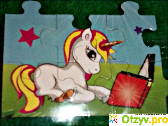 Пазл небольшой, заинтересовал ребенка мало. Да и он очень простой для ребенка 7 лет. Пазл-магнит. Ребенок прикрепил его к холодильнику и переключился на леденец. Леденец крупный и красивый. Поскольку я сама его не пробовала, спрашиваю: "Вкус какой?" Отвечает: "Мммм". Я опять, не отстаю: "Кислый или сладкий?" Ребенок: "Сладкий!" И выпал из реальности на то время, что сосал конфету.