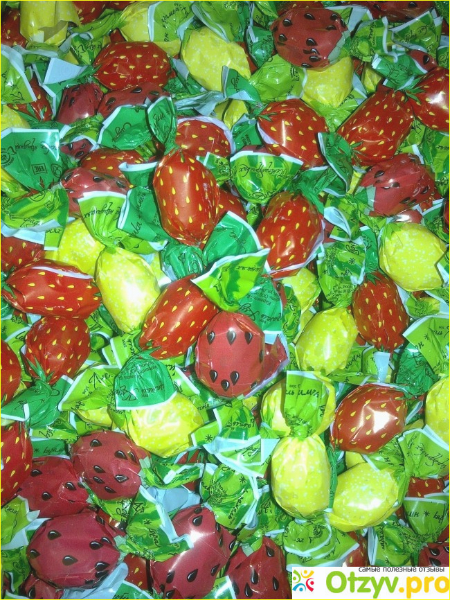 Корпус карамелей не прилипает к обвертке. Хорошо разворачивается. Приятно ароматизирует запахом лимона, арбуза, клубники. Карамельная масса прозрачная. На цвет "Лимон"- желтый, "Арбуз" и "Клубника"- розовых оттенков. Корпус карамелек толщиной примерно 3-4 мм. В меру тверд. Хорошо рассасывается и жуется. Фруктово-ягодная карамель "Арбуз", "Клубника", "Лимон" содержит большое количество начинки. Консистенция начинки прозрачная, вязкая. По цвету и вкусу соответствует названию сладостей. После лакомства оставляет приятное послевкусие. Карамельные сладости "Лимон", "Арбуз", "Клубника"-"Невского кондитера "Белинский" нравятся членам моей семьи. Они радуют глаз и вкус моих домочадцев. Советую любителям сладкого стола карамель с фруктово-ягодной начинкой "Клубника", "Лимон" и "Арбуз".