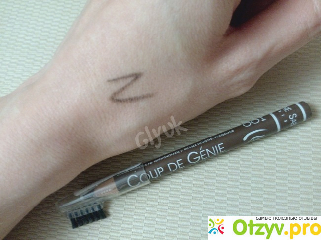 Что ещё хотелось бы отметить, карандаш можно спокойно сочетать совместно с тенями и другими карандашами, легко стирается, но держится долго, то есть если вы попадете в дождь или снег карандаш не потечет, ничего с ним не случится, как переживают многие женщины, все с ним будет в порядке.