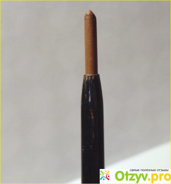Вот только сначала стержень был немного заострен, а после первого же применения сточился и стал более широким, потому прорисовать тоненькие брови им нереально. Кончики бровей при оформлении этим карандашом всегда выглядят слишком толстыми.