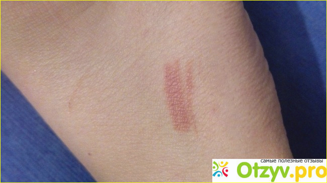 Преимущество средства заключается в том, что 101-й оттенок выглядит очень естественно и дает эффект ненакрашенных, но ухоженных и более пухлых губ (если вести линию на самой границе). Хотя натуральные губы примерно на полтона светлее и чуточку розовее.
