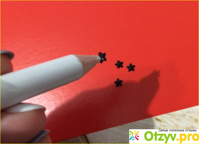 Грифель твёрдый и кончик чуть притуплен. Оно и хорошо, ведь так страза лучше приклеится к поверхности грифеля.