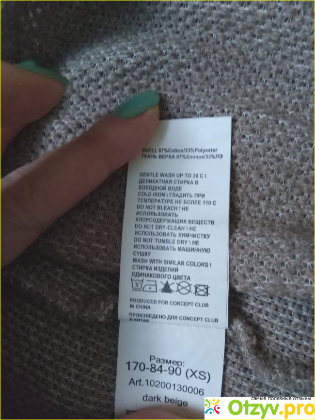 Изготовлено в Китае. Кардиган приятного бежевого оттенка, мягкий и приятный к телу.