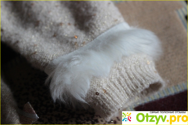 Рукава отделаны пушистыми белыми манжетами. Мех. конечно, искусственный. Такая задумка придает кардигану дополнительный праздничный вид. Я боялась, что манжеты начнут быстро загрязняться, но нет, все нормально.