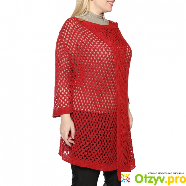 Кардиган Новая жизнь выполнен из ткани, которая именуется словом ажур — материя с отверстиями, легкая и изящная, несущая декоративную ценность.