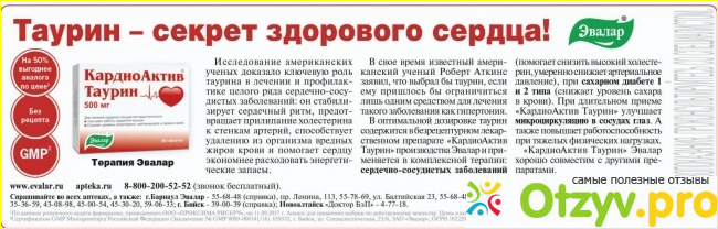 Препарат Кардиоактив таурин производится фирмой Эвалар и относится к средней ценовой категории. Я его в аптеке приобрела за 310 рублей за 60 таблеток.