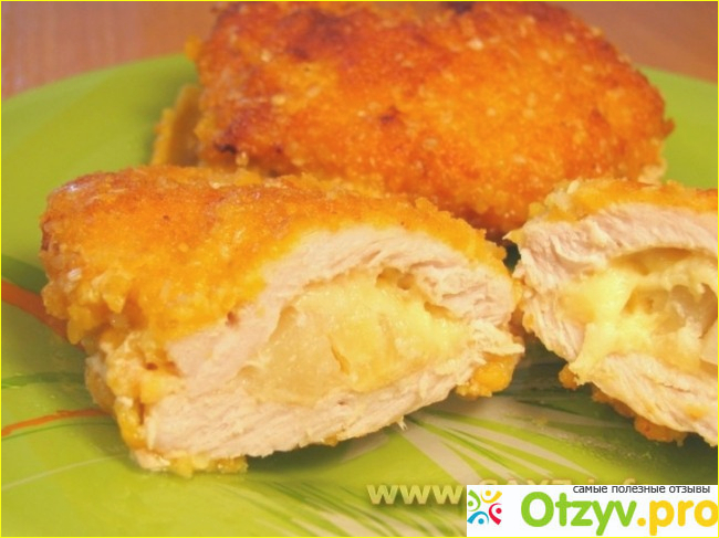Кармашки из курицы с ананасами и сыром. |