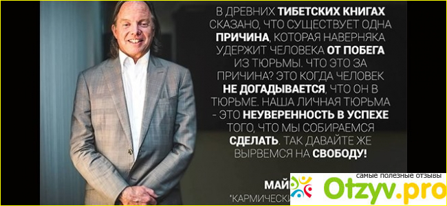 Мне понравилось что текст очень дружественный, настраивающий на позитивный лад. Это очень хорошо, если читатель пребывает в финансовой яме или не верит в свои собственные силы. Автор приводит много историй из реальной жизни людей, которые своими позитивными действиями и следованием принципам кармического менеджмента смогли улучшить свое положение и перейти даже на уровень всемирно известных корпораций.
