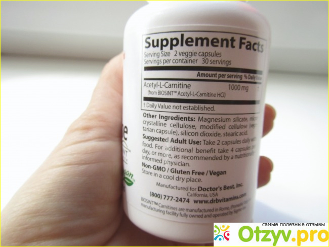 В баночке 60 капсул, употреблять которые можно даже вегетарианцам, производится продукт в США. По инструкции (она полностью на английском языке) принимать этот препарат надо ежедневно во время еды, желательно в первой половине дня, так как Л-карнитин придает энергии, поэтому могут возникнуть проблемы со сном.
