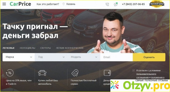 Срочно нужны были деньги на погашение кредита за квартиру. Поэтому решился пока продать свою машину, ещё вполне в хорошем состоянии Рено Логан. Мне рассказали про такой сервис у нас в Казани как покупка автомобиля сразу компанией с последующей перепродажей их через аукционы. Поэтому решил сам туда приехать и посмотреть всё на месте. Когда к ним приехал, то меня встретил очень вежливый сотрудник, который объяснил всю процедуру по продаже. Когда я ему рассказал какой у меня автомобиль, он даже назвал из своего опыта сколько он может стоить, хотя конечно точную цену можно сказать только после технической экспертизы. Сказал какие надо привести документы с собой. Оказалось, что надо не так уж и много - паспорт транспортного средства (ПТС); СТС; Паспорт; Все наборы ключей; Сервисная книжка. Договорились о времени и в назначенное время я был уже у них. Прогоняли машину тщательно, даже тест-драйв провели, наверно выявили бы любую поломку, но к счастью ни чего серьёзного у неё не было. Выставили мне ценник на машину и он меня вполне устроил, учитывая срочность продажи. Конечно, если бы я её продавал месяца 2-3, может и выручил на 50-80 тысяч рублей дороже, но время поджимало и данная цена меня вполне устроила. Деньги пришли через сутки на карту. Так что сервис вполне удобный и без мытарств.