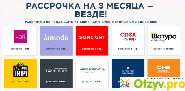 На покупки вне партнерской сети рассрочка действует всего до 60 дней (до двух месяцев). Поэтому нужно быть очень внимательным, перед тем, как подать продавцу карточку на что-то очень дорогое. Если не уверены относится ли тот или иной магазин, кофе, авиакомпания к сети компаний-партеров, то лучше переспросите у продавца или посмотрите на сайте банка. На сайте более достоверная информация, естественно.