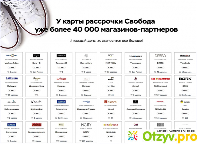 Менеджер рассказала мне обо всех преимуществах карты, а так же сказала где посмотреть полный список партнеров. Магазинов, которые стали партнерами этой карты было так много, что я была удивлена: тут и обувь, и спорттовары — всего не перечесть. Даже еду можно заказывать в рассрочку, потому что немало пищевых магазинов стали партнерами этой акции, столько всего!