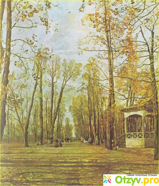 Даже осенью можно спокойно прогуливаться по немноголюдным полюбившимся местам, что и делаю люди, изображенные н картине Бродского. Некоторые из них так привыкли гулять по аллее этого сада, что даже с наступлением осени хотят воспользоваться последними тёплыми деньками, чтобы приятно провести время.