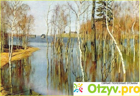 В своей картине "Весна", Левитан, показывает обширный паводок, который сам по себе производит, достаточно унылую и даже опасную для всего окружающего картину, так как определенно понятно, что если бы столько воды, прибывало с деревьями со всей растительностью в долгую, то тогда все бы сгнило и погибло.