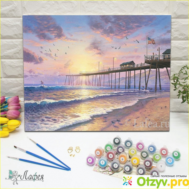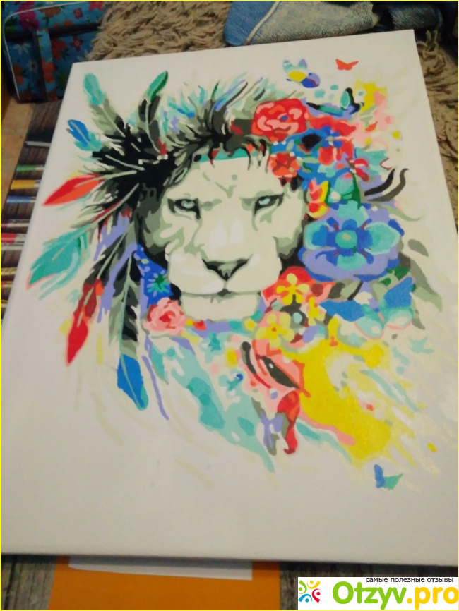 Каждый раз, после большого объема проделанной работы - давайте краскам высохнуть, чтобы не размазать прокрашенные участки. В наборе также находятся контейнеры с акриловым лаком. Им необходимо пройтись по всей картине уже в конце, таким образом, ваша работа будет законченной.