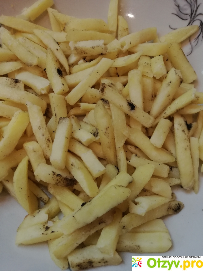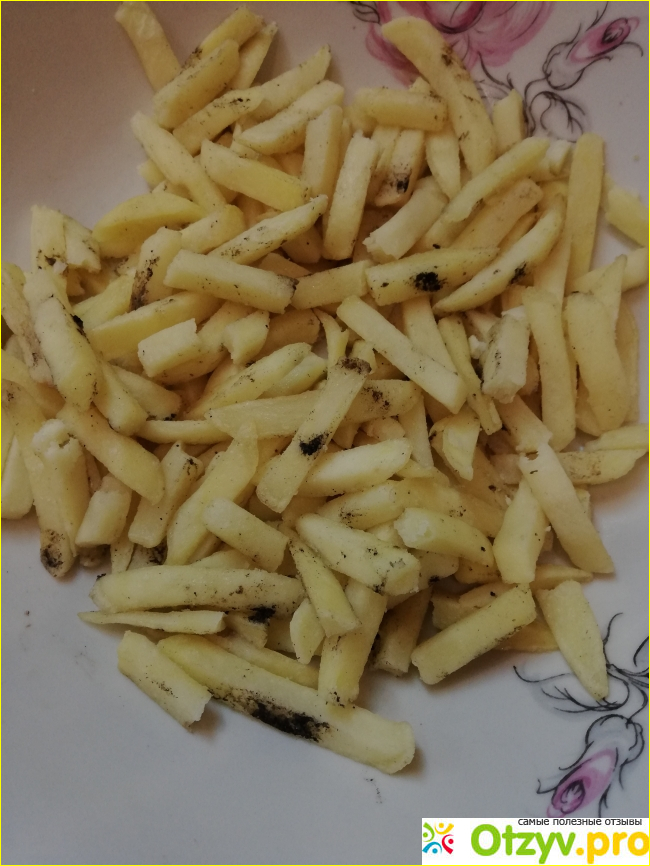 К моему глубочайшему сожалению, мне так и не довелось попробовать эту картошку. Качество ужасное. Даже нет слов, смотрите сами. Вот тебе и импортная картошечка. Порезана, действительно, тонко. Только вот поломанная и в плесени. Естественно, кушать такое не будешь. Мне, как покупателю, очень обидно за такое отношение. Я уже молчу про 200 рублей, которые я просто взяла и выбросила.