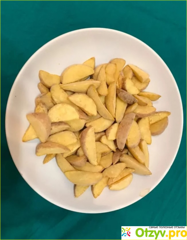 У картошки по-деревенски «4 сезона» всегда отменный вкус! Она не разваливается, сверху покрывается корочкой, а внутри становится мягкой. Я подаю ее с соусом из майонеза и чеснока. Или с кетчупом, если не хочется ходить вонять чесночным духом. Пачки хватает наестся на одного «за глаза». Для двоих рекомендую покупать две упаковки.