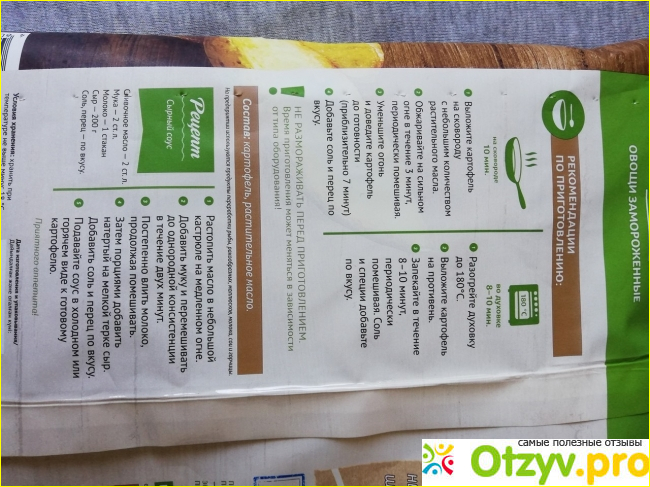 На обороте пачки указан КБЖУ продукта – 76 ккал – для картошки, приготовленной во фритюре, не так уж и много.