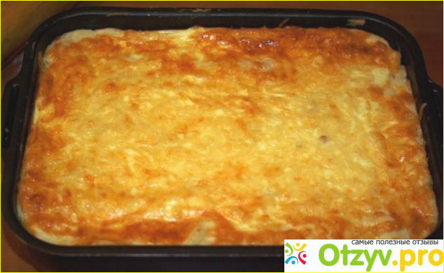 7) Духовку нужно предварительно разогреть до температуры + 180* С, а затем запекать блюдо в течение 35 минут. Хотя в зависимости от толщины слоев процесс запекания может происходить и быстрее.