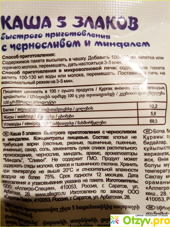 Эта каша моя любимая из всей линейки Эстетики вкуса. Каждое утро я завтракаю ею, приготавливая её на воде или с молоком в микроволновке по 50 секунд.