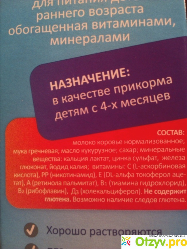 Тут есть краткое перечисление витаминов и минеральных веществ, которые содержатся в данном продукте для детского питания, а также их благотворного влияния на организм, написаны общие советы по приготовлению каш (я не кипятила посуду), а так, наверное, они весьма полезны.