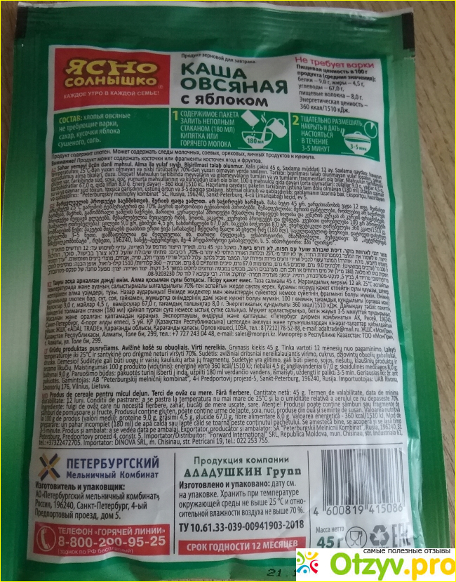 Каша овсяная с яблоком является продукцией компании "Аладушкин Групп".