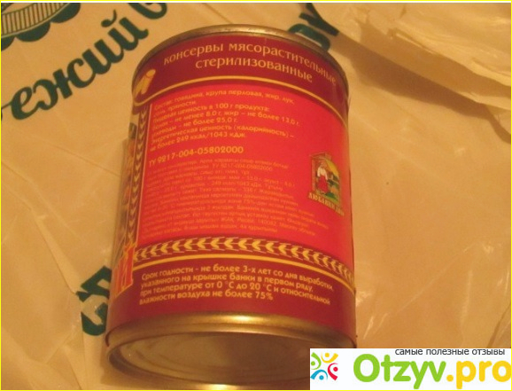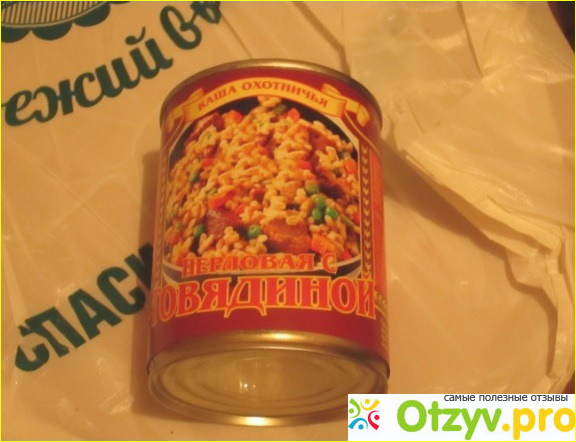 Я чисто и любопытства взял попробовать перловую кашу в банке, которая, судя по красивой этикетке с говядиной да еще и гордо именуется себя "Охотничья". Стоила где-то 25 рублей