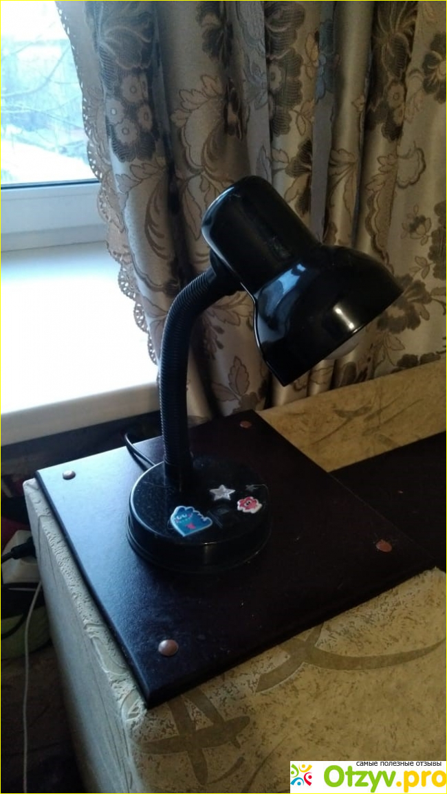 Стоила копейки вообще, а служит уже лет 5 не меньше. Лампочка стандартная, в любом хозяйственном если перегорит купить можно. Наклон освещения регулируется, это удобно.