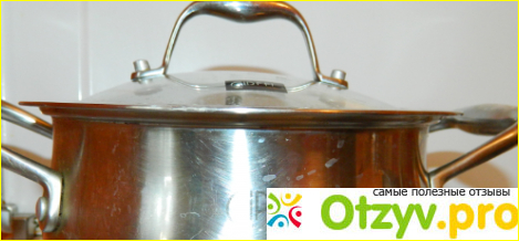 Да еще приготовление в такой кастрюле более комфортное. Меньше пригорают и прилипают продукты к дну. Также ручки удобные, практически не нагреваются. Лишний пар в процессе готовки не «бежит» в разные стороны по кастрюле, а проходит, через определенное отверстие.