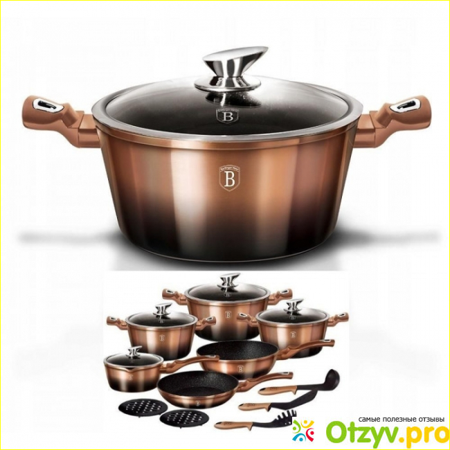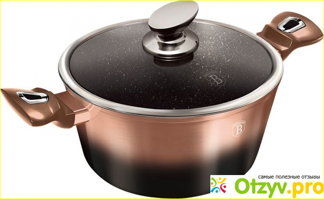 В данном случае кастрюля Berlinger Haus Rosegold Noir Metallic — надежная посуда, так как материей для нее служит высококачественный кованный алюминий. Этот материал имеет немало плюсов по отношению ко многим другим, а потому рассмотрим их: