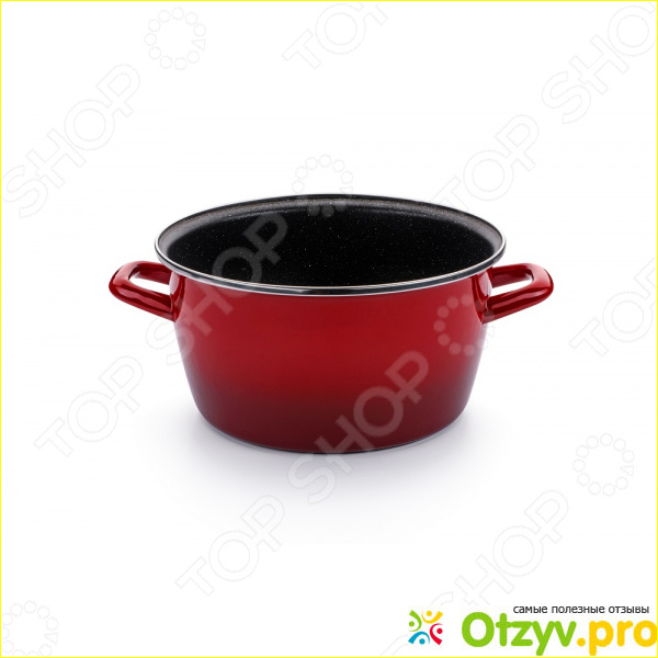 Первый слой это вылита сама кастрюля с углеродистой стали. Толщина стенок составляет 1,2 мм. Дальше идет 4 слоя нанесенной эмали. Каждый слой подсушивался, выдерживали при определенной температуры. Благодаря этому не образуется сколов, даже если уронить или сильно стукнуть. Конечно специально стараться не стоит, потому как и палка раз в год может выстрелить.