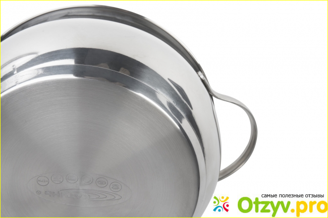 Мне нравится эта кастрюля стальная, конечно, не только за ее дизайн. Но если говорить о ней исключительно касаясь темы внешности — то, несомненно, кастрюля катунь медея kt ap 011 22 хороша собой. Ее бока блестят, так как сталь отполирована — зеркальный блеск радует глаз.