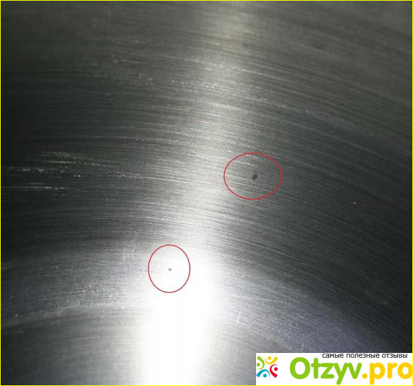 Однако, примерно три недели я заметила на ней первые дефекты, которые мне не понравились. Они выглядели как маленькие точечные углубления, разбросанные по боковинам внутри кастрюли. Если внимательно присмотреться, то эти точечные углубления чем-то напоминали небольшие щербинки. Создавалось ощущение, что металл был неоднородным, из него что-то повылетало, и образовались эти маленькие деффектные ямочки. Потом эти ямочки оказались сплошь покрытыми своеобразным белесым налётом, который не смывался средствами для мытья посуды, а также невозможно его было почистить механическим способом. Я пыталась чистить по-разному, даже использовать зубную щетку с зубной пастой, (какие-то более серьёзные абразивные материалы использовать боялась, поскольку не хотела поцарапать внутреннюю поверхность.) Тем не менее, никакие мои попытки удалить этот злополучный налёт не дали должного результата. Эти щербинки так и остались. хочу сказать, что они были в основном на боковой части кастрюли, на днища их практически не было, возможно только две или три штучки. Спустя месяц этих щербинок стало больше, причём они были не только миллиметрового размера, но и очень мелкие размером с маковое зёрнышко. Мне как-то стало не по себе, сразу возникла мысль, куда одевался металл, вследствие которого образовались эти щербинки. Получается что мы его съели вместе с едой?