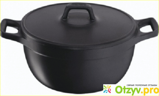 Как говорится была бы посуда, а вот найти что в ней приготовить всегда уже можно при желании конечно. По бокам у нее идет две довольно прочные ручки, которые так же выполнены в черном цвете. Материал ручек из которого она выполнена - это литой алюминий. Так же из этого же материала выполнен и корпус этой кастрюли.