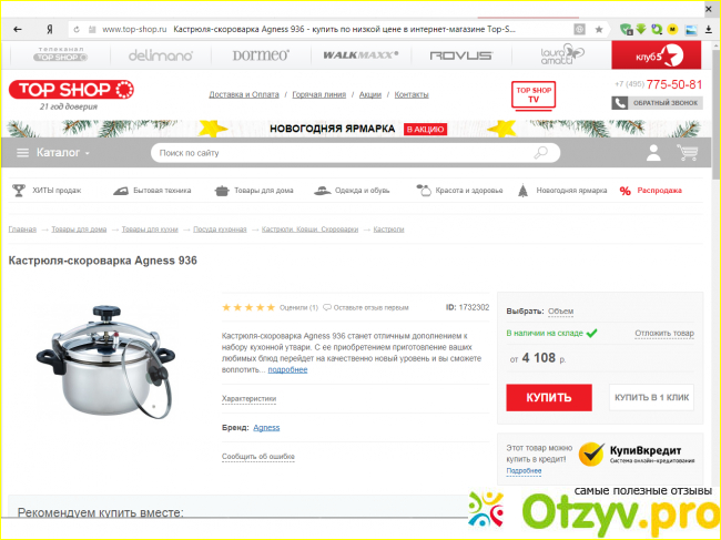 Настоящей находкой и открытием для меня стала кастрюля-скороварка Agness 936 . Покупала ее два года назад и на то время она стоила 3900 рублей, сейчас практически также.