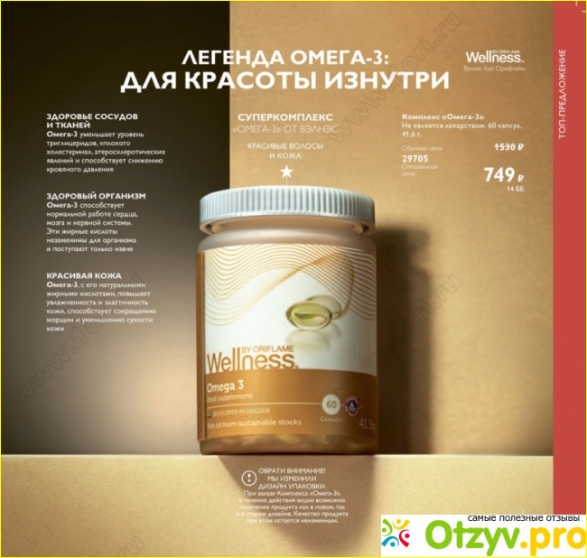 Следующий легендарный продукт - супер комплекс Омега 3 от Вэлнесс - для красоты волос и кожи. Это тоже - капсулы, но уже для приема внутрь. В упаковке 60 капсул красоты, какую же сложную работу выполняют они в нашем организме: