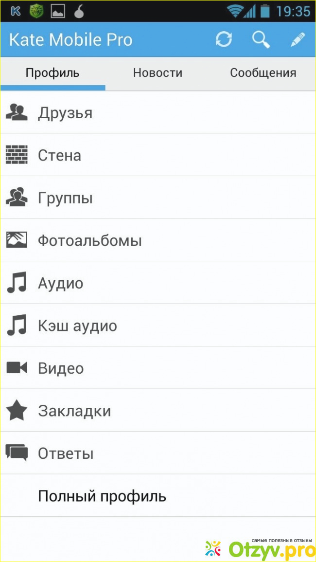 В отличие от официального приложения Kate Mobile не показывает новости.