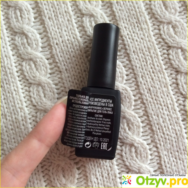 Консистенция данного топа жидкая, но при этом я хочу отметить, что у меня уже есть опыт использования каучукового топа, и данный продукт гуще, чем другие аналоги. Им легко пользоватся, он не затекает на боковые валики и кутикулу, идеально распределяется по ногтевой пластине. Топом удобно пользоваться, такая консистенция однозначно понравится как опытным мастерам, так и новичкам.