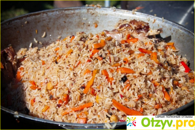 Мясо приобретает яркий аромат, которым пропитывает рис — вот и результат: блюдо имеет ярчайший мясной вкус и аромат.