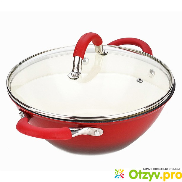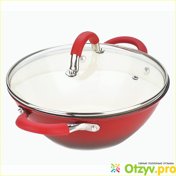 Здесь же ручка. Если крышка сделана со стекла, то ее ручка с нержавейки и пластика. Красное это ни что иное, как пластик. Он не нагревается благодаря форме изделия. Сделана высокого. Кстати, очень удобно брать в руку, не нужно ничего выдумывать.