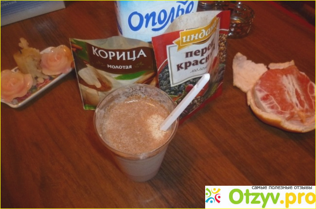 Правильно приготовить коктель просто. Нужно налить в стакан кефир, который продается во всех магазинах продуктовых молочных отделах, корицу, имбирь и красный перец острый.