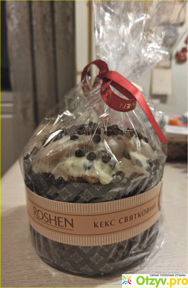 Приблизительно за неделю до Пасхи зашла в свой "придворный" магазин "Рошен" за чем-то вкусненьким. Торта не хотелось, нашла Кекс праздничный, который кондитеры явно задумывали как пасхальный. Кекс красивый и ароматный, упакован как и все кексы Рошен в целлофан и с бантиком.