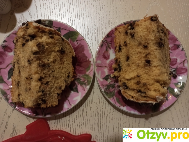 Внутри тоже шоколадные вкрапления. Изюма, орехов или цукатов нет, но все равно очень вкусно. Тесто сдобное и ароматное - кекс неделю ждал, но не высох.
