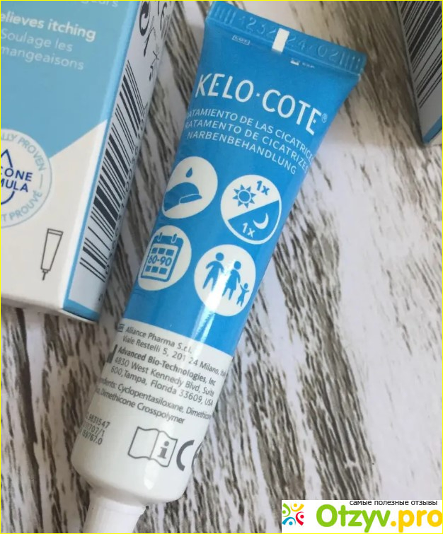 Kelo-Cote Крем Гель не содержит отдушек, красителей и консервантов. Средство рекомендуется для лечения и профилактики гипертрофических и келоидных рубцов, для уменьшения зуда, жжения и боли, связанных с рубцами, улучшения эстетического вида рубцов.