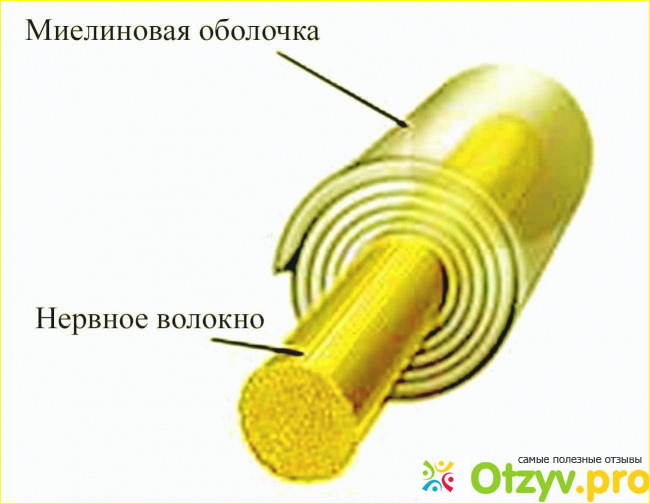 Вот на этой картинке очень четко представлена поврежденная миелиновая оболочка, но только при рассеянном склерозе. Но препарат келтикан комплекс является эффективным при поражении периферических нервов, а рассеянный склероз - это центральная демиелинизация, так что этак картинка лишь для наглядной демонстрации. При рассеянно склерозе этот препарат обычно не используется, его эффективность не доказана. (Может быть, пока еще, но об этом говорить рано)