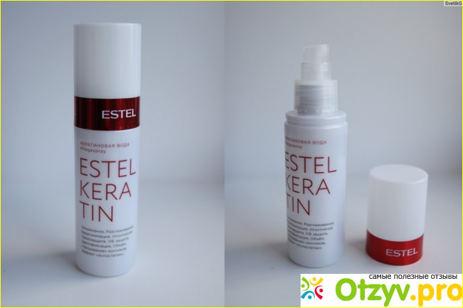 В целом, мне кератиновая вода от Estel понравилась, буду ее покупать время от времени. Она делает мои волосы более гладкими и шелковистыми, они хорошо расчесываются и выглядят более здоровыми. Теперь мои волосы меньше повреждаются укладкой и воздействием красящих веществ. Могу оценить данную кератиновую воду только в 4 балла, все же без минусов не обошлось.