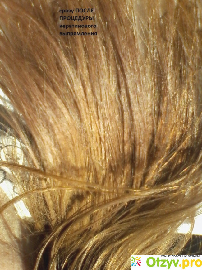 Сразу после процедуры волосы выглядели прямыми, мягкими, как у ребенка, но МАТОВЫМИ, то есть без блеска. Цвет волос очень приобразился, стал более насыщенным и интересным, кстати волосы стали светлее, чем до процедуры.