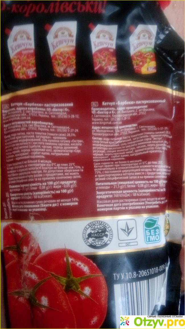 Хотя в составе есть перец, кетчуп не острый, с совсем лёгкой пикантной ноткой.