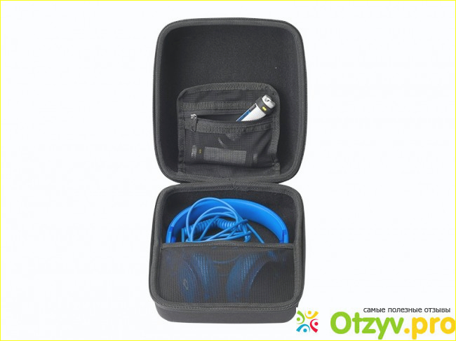 Теперь посмотрим этот кейс изнутри. Внутри он имеет отделку из мягкого материала, что предотвращает повреждение наушников, находящихся в кейсе. Проводные наушники легко вмешаются в данный кейс и они, как правило, кладутся в нижнее отделение. Второе отделение имеет сетчатый карман, куда можно положить, к примеру, флешку, карту памяти или другие подобные аксессуары. Как говорится, места тут хватим всем. К примеру, я держу в данном кейсе два комплекта проводных наушников и они вполне туда вмещаются.